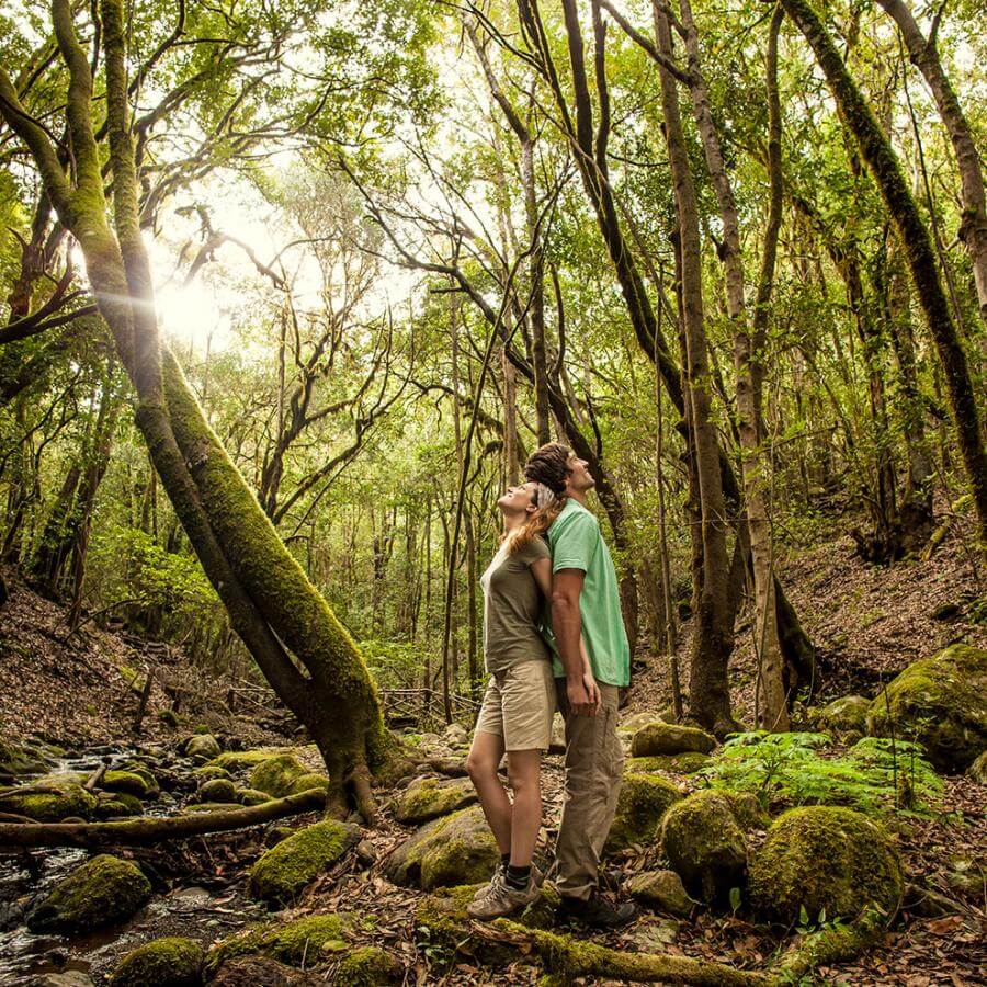 Øens juvel. Et område på 40 km², der dækker 10 % af La Gomeras overflade, og som er katalogiseret som verdensnaturarv af UNESCO siden 1986. Et unikt økosystem, hvor en forhistorisk skov med dens grønne grene dækker øens højland. Laurbærskoven, denne endemiske skov, udgør den største del af parken og går tilbage til tertiærtiden. Laurbærskoven er identisk med de skove, der voksede i Europa eller Nordafrika for millioner af år siden, og er fortsat ét af de sjældne levn af fortidens planter. Tusindårige træer, der er bevaret takket være manglen på vulkansk udbrud i løbet af to millioner år og et klima, der er særligt favorabelt for denne vegetation. Hvis kysterne på La Gomera er mere tørre, så er midten mærket af passatvindene. Det er vinde, der blæser et hav af skyer – en tåge, der muliggør fænomenet, der er kendt som "vandret regn", og som gør det muligt, at plantearter i denne frodige og magiske skov kan bevare deres blade hele året. Der er laurbærtræer, ja, men der er også mange andre arter som f.eks. gigantiske bregner samt mos og lav. Der er i alt mindst 2.000 plantearter, hvoraf mange er endemiske her på De Kanariske Ør, og som bevares takket være den høje fugtighed og de milde temperaturer. Et paradis for fugle, hvis sang betager de besøgende. Udover at anbefale jer at nyde dette sted fuld af romantik og mystik, så kan I også eviggøre jeres kærlighed der med billeder og indfange den for altid.